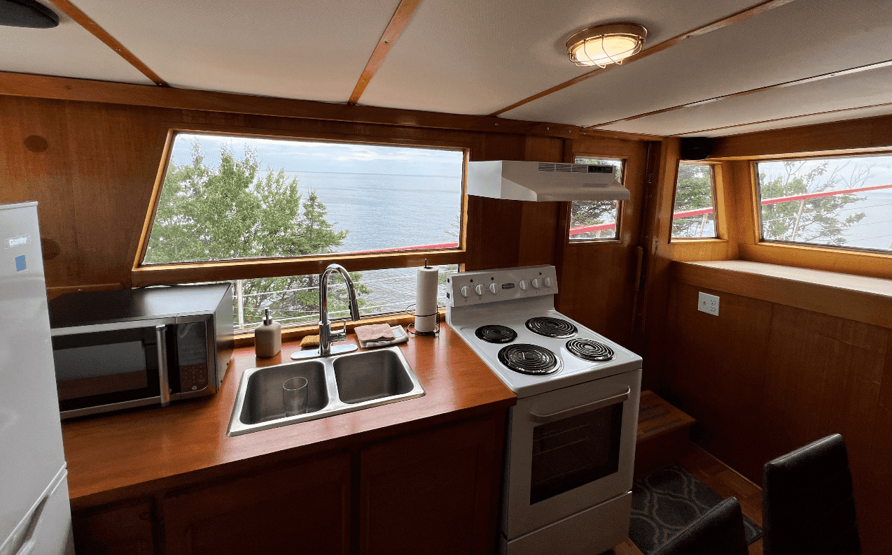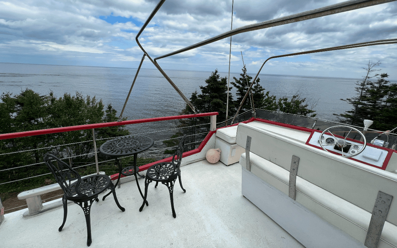Surplombant la mer à perte de vue, le bateau de la Maison Lebreux vous offrira un séjour inoubliable dans un décor unique. L’instant d’un séjour, devenez capitaine de ce navire chaleureux situé en retrait sur la célèbre Longue-Pointe de Petite-Vallée. Avec sa terrasse privée, sa cuisine complète, ses deux salles de bain et ses trois chambres, vous ne voudrez certainement plus larguer les amarres.